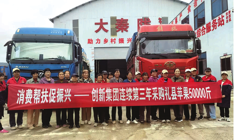 在持续巩固拓展脱贫攻坚成果、助力乡村振兴的进程中,创新集团帮扶工作并未局限于省内。在全国工商联指导下,创新集团与甘肃礼县对接帮扶,开展爱心助农增收行动,连续3年采购礼县苹果,每年5万斤,共计15万斤,取得了良好的帮扶成效。此外,创新集团还积极协助礼县大学毕业生就业安置,如今招聘范围已从最初的礼县扩大至整个陇南市的8县1区,让东西部协作的温情不断延续。
