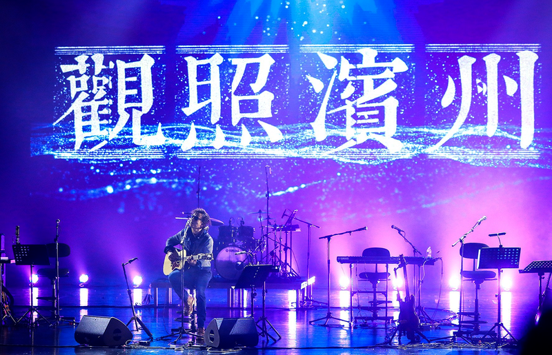 舞台上的灯光忽明忽暗,明暗之间,抱着吉他的赵照登场。他戴着墨镜,指尖轻拨琴弦,以一首舒缓的歌曲《小小少年》暖场,那一刻,剧场里安静了,只有吉他的原声和温柔的嗓音。