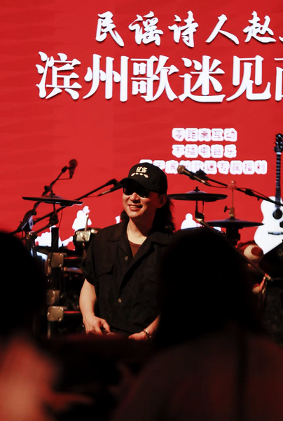 随后,吉他手、贝斯手、键盘手、鼓手依次登台助阵,现场氛围渐入佳境。赵照还现场展示了口琴、笛子等乐器演奏,台下观众自发响起阵阵掌声。