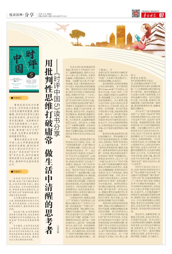 用批判性思维打破庸常做生活中清醒的思考者 ——《时评中国5》读书分享